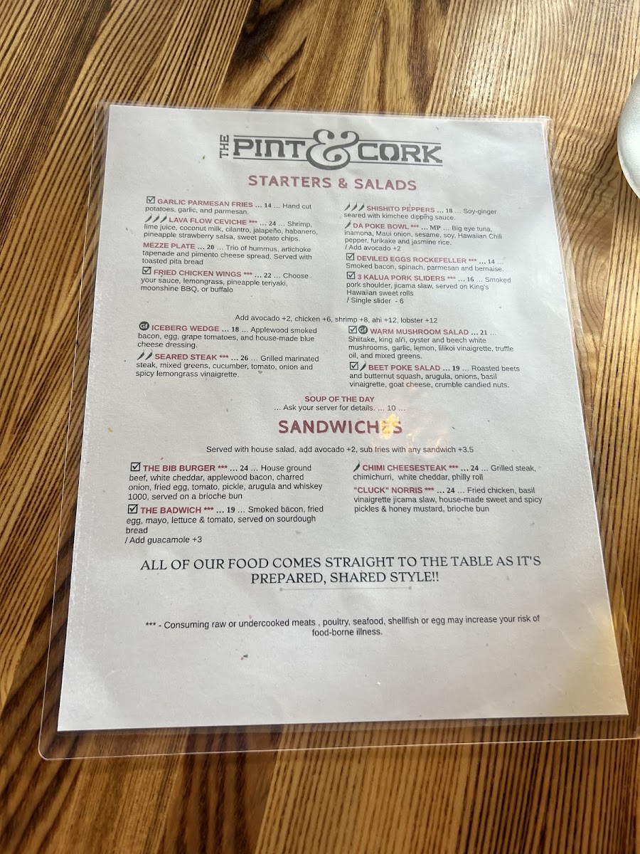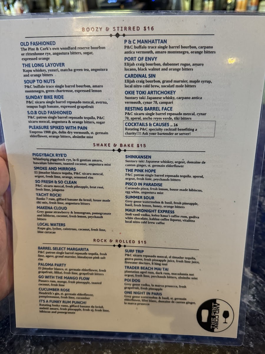 Introducing the menu at The Pint & Cork is a delightful journey into flavorful offerings that cater to diverse palates. Nestled at 3750 Wailea Alanui Dr, Kihei, this cozy spot combines a relaxed atmosphere with an impressive selection of food and drinks. Guests rave about the warm mushroom salad and the savory Hong Kong noodles, while the happy hour menu shines with classics like cheeseburger sliders and garlic parm fries.